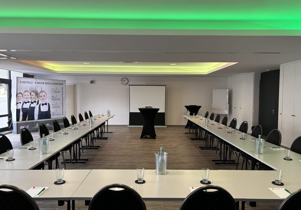 - Basistechnik (1 Flipchart, 1 Pinnwand, Moderatorenkoffer, Beamer, Apple TV auf Abfrage)
